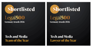 Die Shortlist-Platzierungen knüpfen an die wiederholten Auszeichnungen unserer Medienpraxis in anderen Marktanalysen an, darunter Juve und Legal 500. Für uns ist die Nominierung vor allem ein Zeichen dafür, dass unsere Arbeit in einem hochdynamischen Umfeld verlässlich wahrgenommen wird.